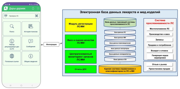 Мирбек Кудуретов: Приложение интегрировано в ЭБД. В нем можно найти препарат и проверить, завезен ли он официально. Достаточно отсканировать QR-код на упаковке, и система покажет информацию о том, что лекарство прошло государственную регистрацию и оценку качества, а также отобразит номер сертификата качества.