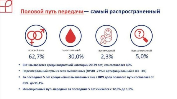 По ее данным, парентеральный путь из выявленных составляет 30%, а передача инъекционным путем снизилась с 12,6% до 1,9%.