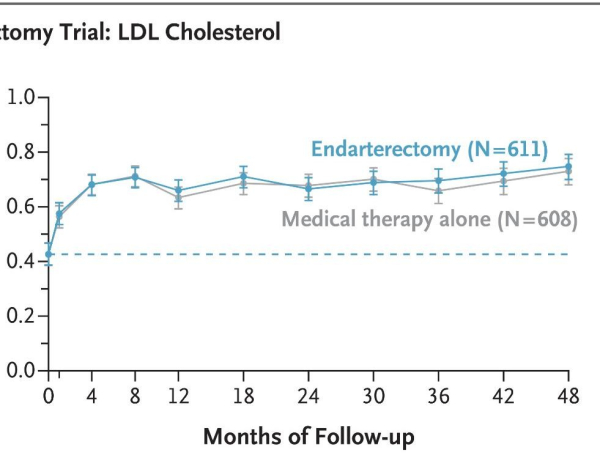 Во-третьих, медикаментозную терапию можно было бы дополнительно интенсифицировать, как признают авторы. В ходе последующего наблюдения в исследовании CREST-2 только у 60–70% пациентов уровень систолического артериального давления находился в целевом диапазоне (<130 мм рт. ст.), менее чем у 80% уровень холестерина липопротеинов низкой плотности (ЛПНП) находился в целевом диапазоне менее 70 мг на децилитр (менее 1,80 ммоль на литр), и только примерно у 50% пациентов с диабетом уровень гликированного гемоглобина находился в целевом диапазоне. Новые липидснижающие препараты, такие как ингибиторы пропротеинконвертазы субтилизин-кексин типа 9 (PCSK9), и более низкие целевые уровни холестерина ЛПНП менее 55 мг на децилитр (менее 1,40 ммоль на литр) предоставляют варианты лечения, которые не были доступны в исследовании CREST-2.