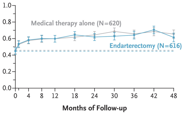 В исследовании CREST-2, публикация данных которого состоялась в The New England Journal of Medicine (The NEJM), проводилось параллельное независимое сравнение стентирования с медикаментозной терапией и эндартерэктомии с медикаментозной терапией.