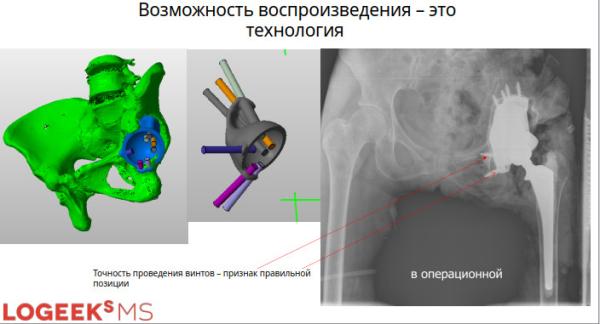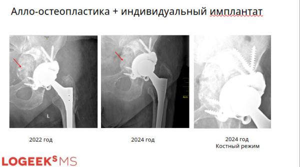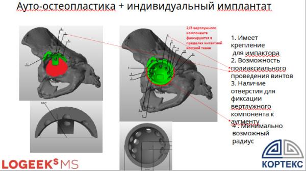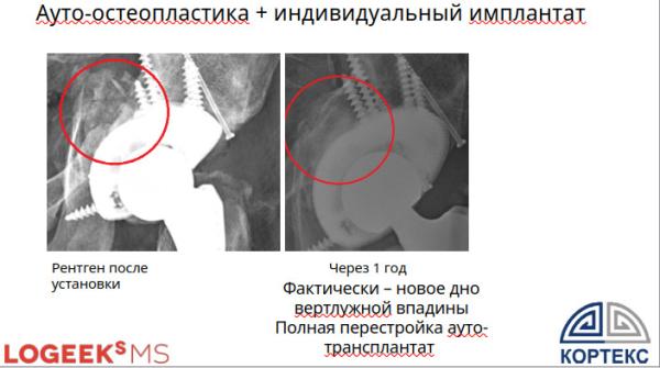 По словам докладчика, первая операция с применением индивидуальных имплантатов — эндопротезирование тазобедренного сустава — проведена в хирургическом центре «Кортекс» в ноябре 2022 года.