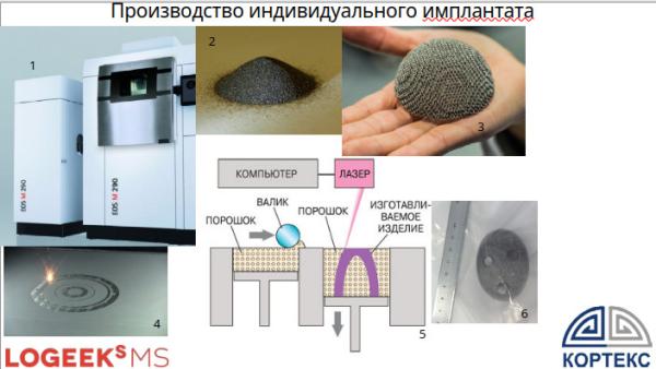 — Печать индивидуальных имплантатов на 3D принтере из титана методом SLS (лазерное спекание).