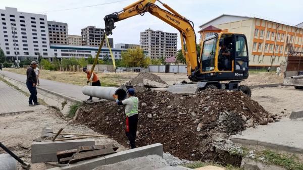 Сотрудники муниципального предприятия «Бишкекасфальтсервис» демонтировали фундамент и начали организацию заезда, устанавливают дорожные и тротуарные бордюры.
