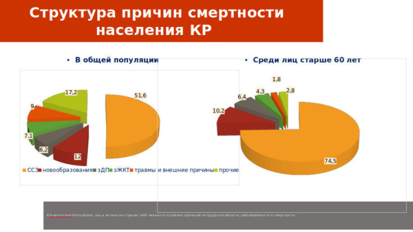 По ее данным, причины смертности населения Кыргызстана следующие: