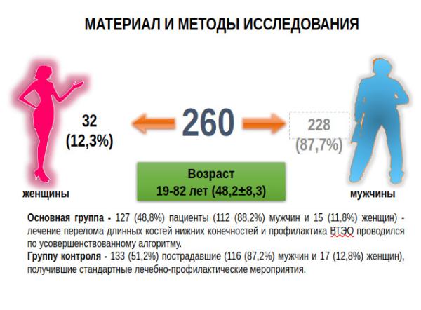 При этом, докладчик отмечает, что точная своевременная диагностика тромбоза глубоких вен на основе клинических симптомов затруднена, а применение дополнительных методов исследования не всегда возможно. Подавляющее большинство случаев тромбоза глубоких вен в посттравматическом и послеоперационном периодах не имеют ярких клинических проявлений. Поэтому, учитывая данные исследований, с практической точки зрения можно считать, что развитие тромбоза глубоких вен в дистальных отделах голени при повреждениях и оперативном лечении нижних конечностей, таза, сочетанной травме и постельном режиме больного, является закономерностью.