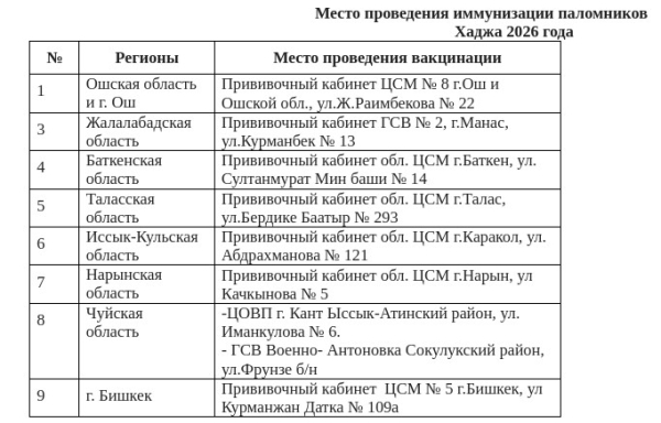 Хадж 2026 — Минздрав проводит обязательную вакцинацию паломников. Адреса